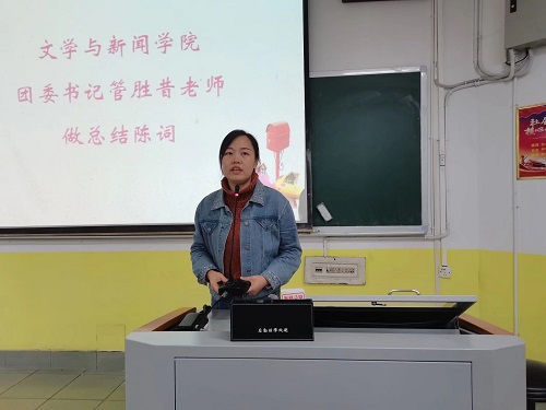 第二十届学生会团委第二副书记覃庆姿带领全体志愿者宣誓后,团委书记管胜昔老师对大会进行了总结。首先,她勉励青年学生要勇于奉献,在奉献的过程中找到生命的意义与价值;其次,她鼓励青年志愿者实践部的活动策划要提升品质,从关心国庆社情民情的角度,将自己的所学、所有、所长与社会所需结合起来,提升志愿服务项目的社会价值和整体品质;最后,她勉励每位青年志愿者追求成长,既在志愿服务活动中行善立德,也在各项实践活动中提升能力,实现自我的全面成长。