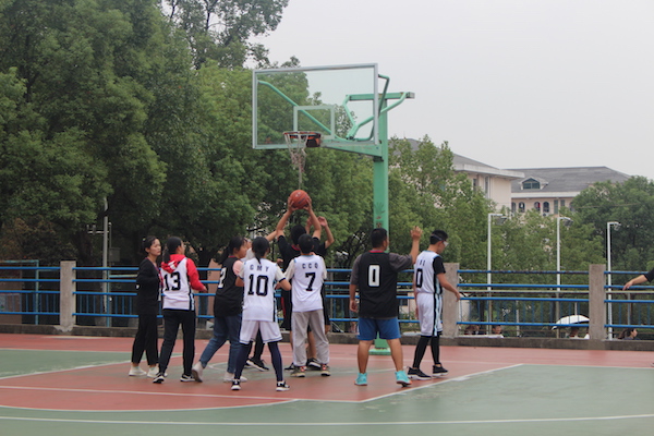 裁判一声哨响,现场的气氛顿时紧张起来。比赛正式开始,球被高高抛出。比赛伊始,双方的攻势就十分猛烈。19中文三班几员猛将向新闻一班发起了攻势,配合默契的他们接连进球。球员秦凡森、侯怡宁的进球精彩瞬间也赢得了现场的欢呼与呐喊。而19新闻一班的球员们也不甘落后,寻求机会突破攻势。女将吕丹凤拿下了新闻一班的第一个四分。双方你追我赶,得分交替上升。比赛第一节结束,比分为5:4。