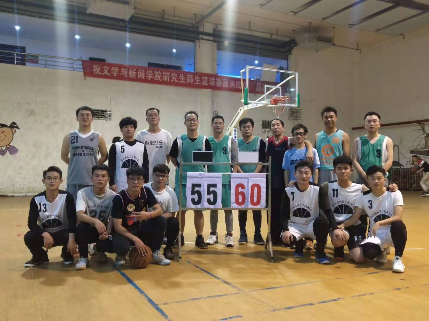 比赛后半场,两支球队及时调整战术,争分夺秒,奋力追赶,力求为队伍争夺最后的胜利,场上比赛氛围愈演愈烈。挡拆、跑位、进攻!赛场上高潮迭起,精彩不断,扣人心弦,双方比分交替上升。虽然学生队提升了比赛的节奏和速度,三节结束时将比分追至只差1分,但是教师队的攻势依旧不减,阵地中一次次默契的传球、精准的挡拆、潇洒的投篮,让场下的啦啦队热血沸腾,也让教师队士气高涨,比分始终保持领先。时间一秒秒的流逝着,当周鹏飞副书记的一次超远三分出手,全场比赛结束。老师队以60:55的比分拿下比赛。