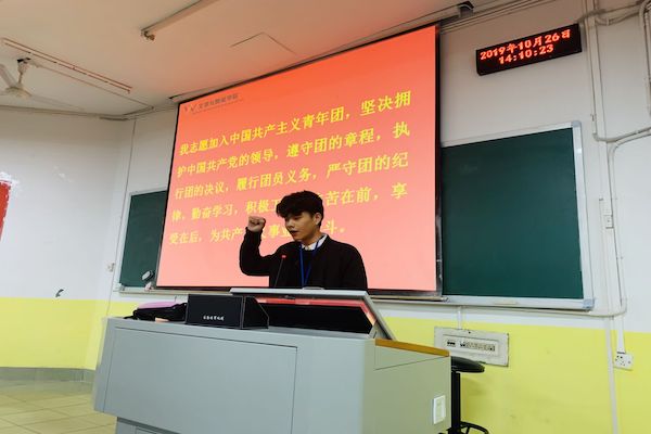 学生会组织部副部长李珏菱为大家讲解团的基本知识。她提到中国共青团是中国共产党领导的先进青年群众组织,强调了共青团对我国的重要意义以及共青团在我国的重要地位。随后,李珏菱同学分点为大家讲授了中国共青团的历史沿革、组织原则基本任务、入团条件和组织特征。首先李珏菱同学以一套形象的树状图为我们讲述了中国共青团发展的历史轨迹。在这历史进程中,中国共青团有飞突猛进也有停滞不前,所幸如今,中国共青团保持着它应有的活力,稳步发展。接着,李珏菱同学讲述了中国共青团的组织原则和基本任务。她强调共青团的组织原则是民主集中制,共青团现阶段的基本任务包括坚定不移的贯彻党在社会主义初级阶段的基本路线,为全面建成小康社会、加快推进社会主义现代化贡献智慧和力量等。随后,李珏菱同学提到入团条件,为团员的身份划出了明确的界定。最后,她为大家介绍了团的基本特征,包括团徽、团旗、团歌、团员证。李珏菱同学关于团基本知识的教授使各位同学对团的了解更进了一步,大大增强了同学们的组织自信。