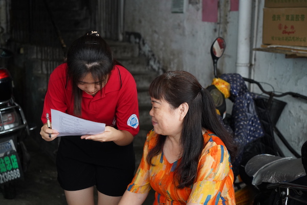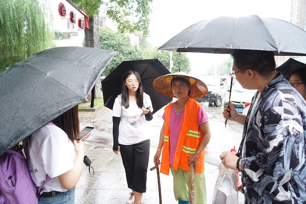 (图为调研团成员正在采访一位奶奶)