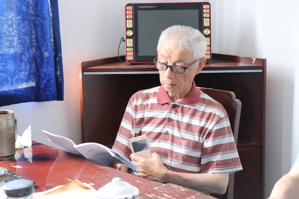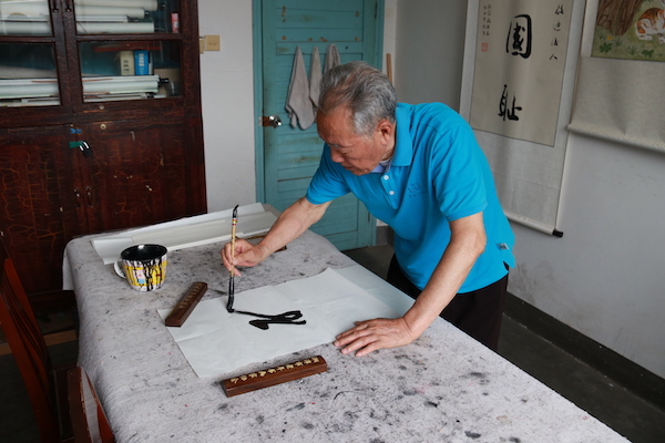 老年气排球队年龄最大的队员,还写得一手好字,书法室里挂着好几幅他的书法作品。这位理科出身的老人,在文学上也造诣颇高,临别时,不仅将自己的文集赠送给我们,还为调研团题字“砥砺前行”。