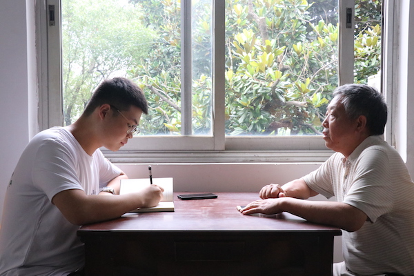 (图为曾永和老师接受调研团成员采访)