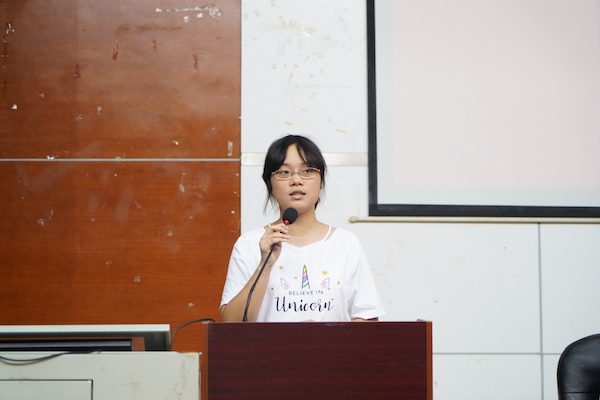 2019级汉语言文学一班胡麒雯同学代表全院新生发言。胡麒雯同学向大家分享了自己对大学生活的几点规划:一是涵养家国情怀;二是坚持梦想满怀;三是保持进学热忱;四是锤炼坚韧品格。如胡麒雯同学所说:“只有启程,才会到达;只有播种,才会收获;只有拼搏,才会成功”。