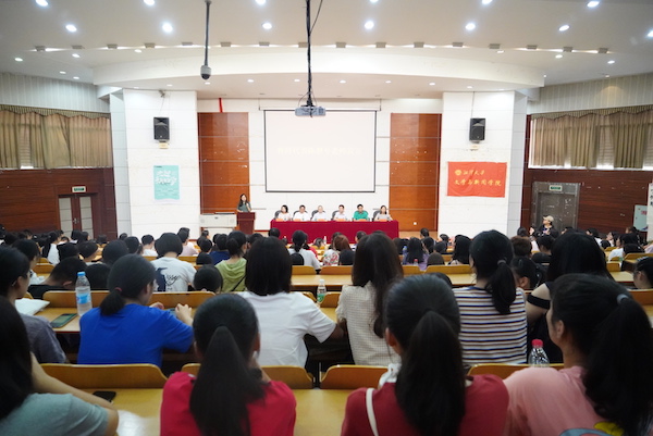 陈梦兮老师代表全院教师在开学典礼上发言。从大学学习与高中学习的不同点出发,陈老师向同学们分享了一些大学学习的经验。“高中阶段的学习,侧重锻炼记忆、理解和运用能力;大学阶段的学习,同学们要着重培养自己观察、分析、表达的能力。”以《庄子·北冥有鱼》为例,陈老师从观察和分析问题两个方面启发大家,观察是第一步,提出问题后要学会分析问题,要学会站在巨人的肩膀上思考问题。陈老师强调,读书是一个能综合锻炼以上三种能力的方式,希望同学们能充分利用时间,养成良好的阅读习惯。