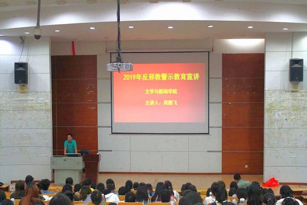 党委副书记周鹏飞、湖南省普消消防教官李进军于逸夫楼二报为19级新生开展了反邪教警示宣讲活动和消防安全知识讲座,给新生们上了意义重大的一课。