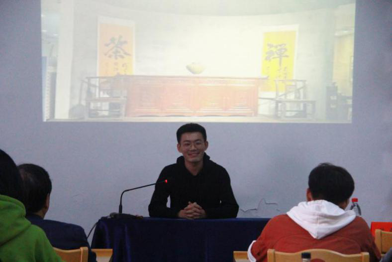 论坛伊始,主持人先为大家播放由文新院研究生会制作的“湘韵论坛”宣传片,带领大家回顾以往“湘韵论坛”风采,展望未来“湘韵论坛”发展。而后,一敲醒木,画风一转,主持人转变为说书人。在大家看来,“学术交流”必须立论严谨,言之有据,不可由着性子臆造,但是此次论坛,采用“一茶、一点、一评书”的形式,不仅体现了主讲人的高超技艺,而且在此氛围下,学生们淡去了一身疲乏,享受了主讲人带来的精彩内容,提高了在场学生的学习兴趣和学习效率。