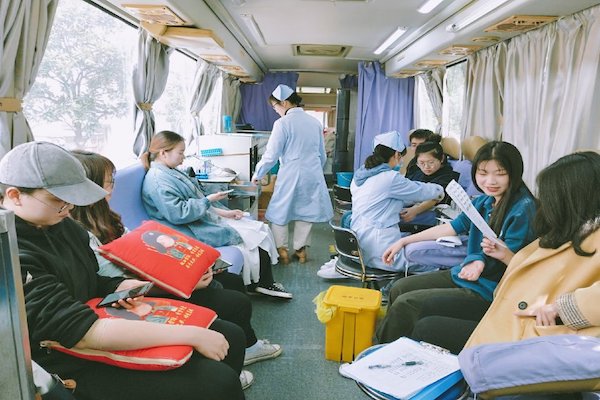 爱心血库的志愿者们组织举办了一场以“追梦赤子,热学雷锋”为主题的高校大型献血活动。