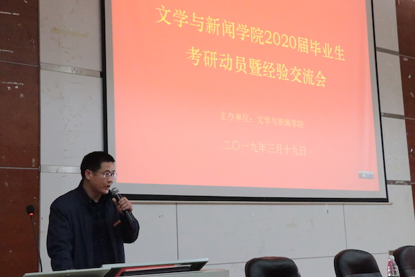 院长李剑波教授进行考研动员,李院长主要围绕三个方面做了宣讲。第一是探究“为什么考研”的问题,这是考研决心确立的基础。关于这个问题,李院长详细地从社会发展趋势对学历的要求、就业竞争、全社会对深度的要求三大方面进行了阐释,他由社会现实入手,鼓励大家考研,为自己的人生赢得更多的机会。第二是探讨读研的好处。李院长首先用好职位注重素质的事实来激励大家提高就业竞争力,以此提高自己的薪酬满意度。“腹有诗书气自华”,李院长用幽默风趣的语言说明了更高的学术水平会让人气质提升,增强了大家对读研的向往。第三个方面,李院长分析了考研的现实,告诫同学们从实际出发,根据个人情况选择要报考的学校,鼓励报考顶尖的大学,同时也欢迎大家报考本校,思考机遇与风险,做出适合自己的选择。