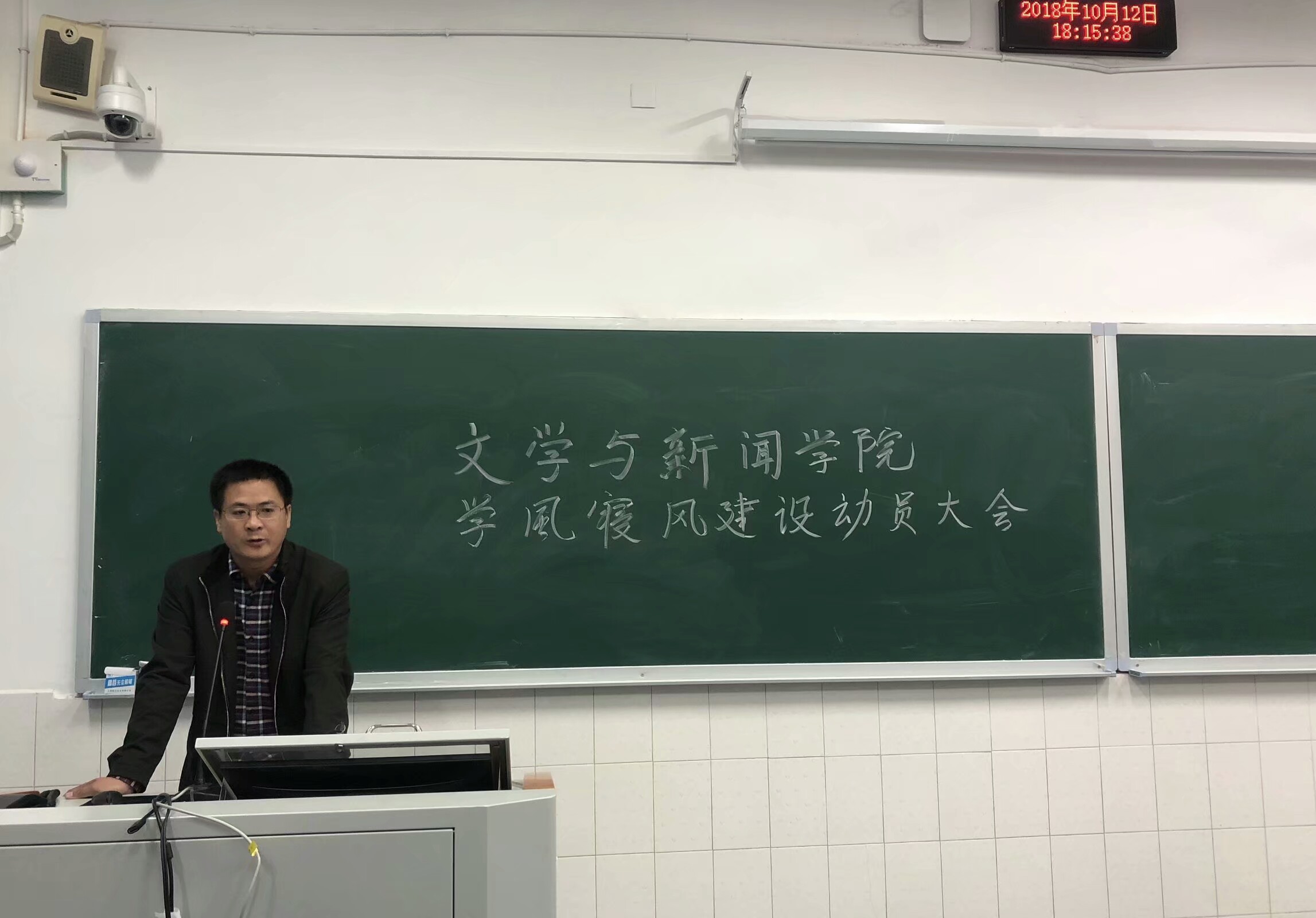 最后,周鹏飞老师倡导在座的各位同学坚决传达会议精神和发挥带头模范作用,积极推动本院学风建设的顺利进行,齐心协力将本院建设得更好,并祝愿同学们拥有一个更好的前程!