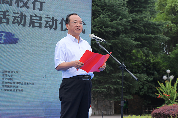 学生代表于广强在发言中借用《离骚》和毛泽东主席的经典诗句,展现了怀化的山川造化之美,表达了怀化诗意天地的悠闲,用革命先烈的英勇事迹阐释了怀化地区深厚的红色基因。