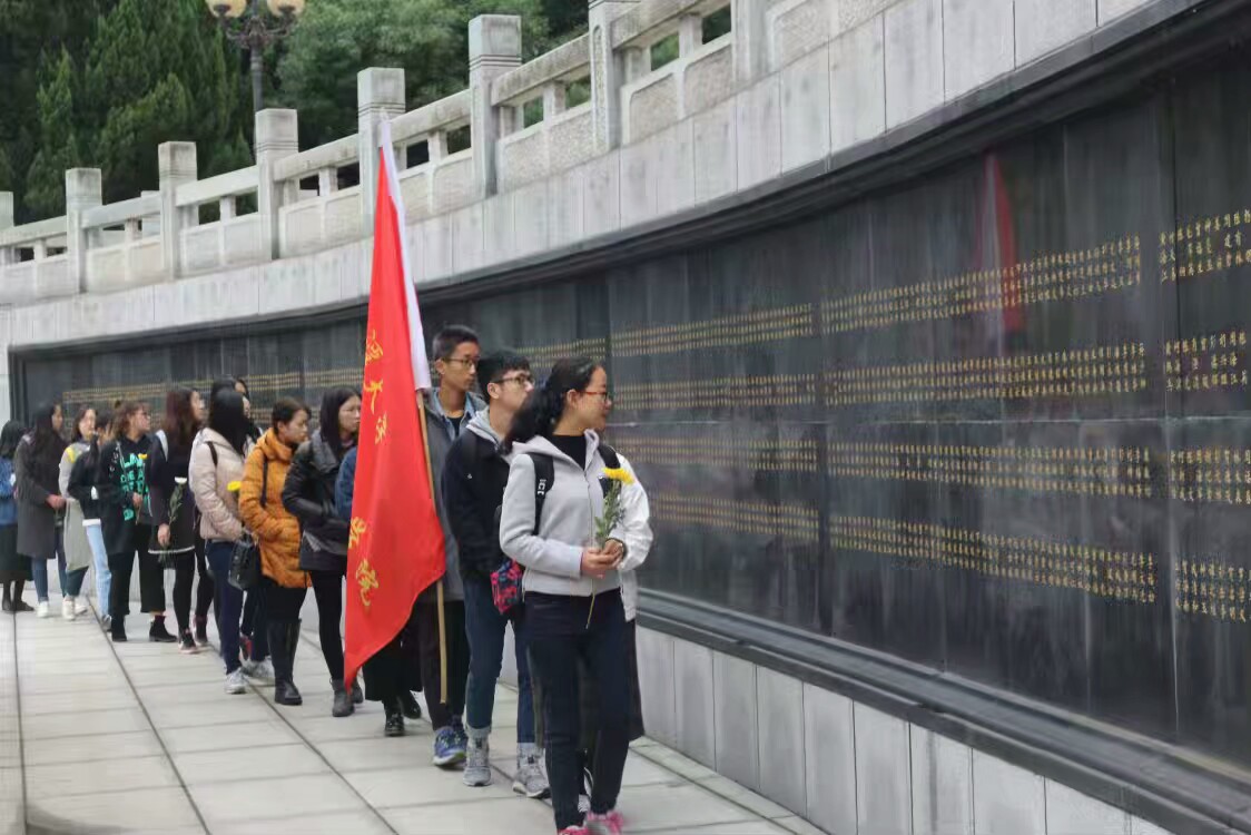 东门汽车站口集合。工作人员在现场进行并确保无误后,将参与人员分为两批分别前往。组织过程中学员认真配合,井然有序,体现了其较高的思想素质。第一批人员到达目的地后,组织部干事宋子健同学向同学们介绍了有关湘潭市烈士陵园的历史和分区;而后,再由组织部干事杨江宇同学对沉睡在此的烈士进行了一个大概的介绍。