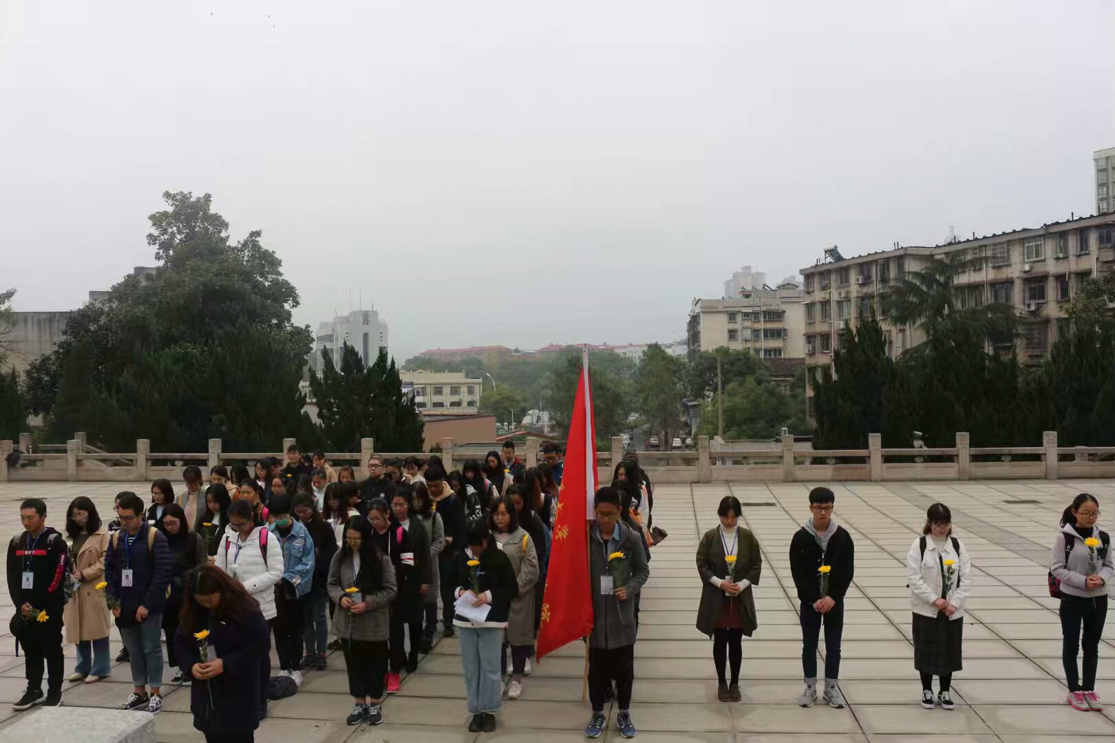 本科生党支部书记郭海瑞学姐发表讲话。郭海瑞学姐主要表达了对烈士们的崇尚敬佩,同时讲了此次活动对学员们的意义并对学员们寄予了希望与祝福。而后,全体学员在工作人员的组织下秩序井然地绕纪念碑一周,缅怀革命先烈,表达内心的尊敬之意。