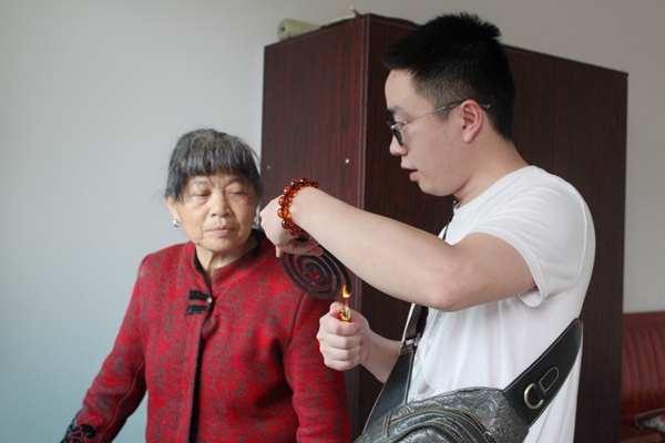 下午三点,志愿者们提着麦片、蚊香、香皂等慰问品来到敬老院,给老人们分发慰问品,关心老人们的生活状况。搀扶着老人们就座,和老人们聊天,为老人们送去了充满真挚感情的祝福语。