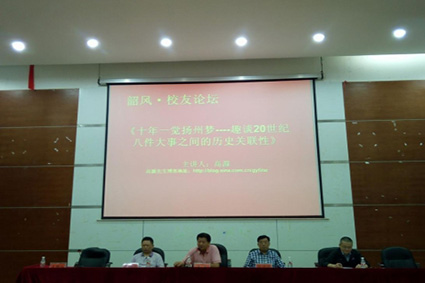 颁奖结束后,高源先生做了题为《十年一觉扬州梦——趣谈20世纪八件大事之间的历史关联性》的讲座,从1906年清政府预备立宪讲起,讲述了中国在两次鸦片战争失败后开始的救亡图存斗争,从国共合作谈到新中国成立,再到新中国建立以来我国在社会主义道路建设中的探索和实践。他指出,整个历史的洪流,就是不断地否定之否定的过程,只有不断否定并完善自身,才能推动社会朝更好、更健全的方向发展。高源先生以敏锐的思想以及深厚的历史与文学底蕴,让到场师生获得众多新颖的知识和思考。