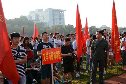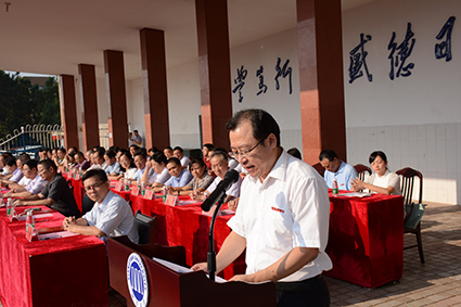 典礼开始后,大会首先进行了升旗仪式。接着是校长黄云清教授发言,黄云清校长首先表达了自己对新生的欢迎,还将同学们比作“洞庭湖的垂杨柳”,倒插着也能长!之后,黄云清校长表达了对同学们的殷切希望,即希望同学们能让“优秀”成为一种习惯。对此,他讲了三个方面的内容:第一,加强锻炼,增强体魄;第二,提升专业技能,将博学与笃行结合起来;第三,培养创新精神,激发创业意识,坚持追求卓越的湘大精神。并告诫大家“年轻是追求梦想的最大资本”,一定要在大学生活中努力学习,敢于追梦。