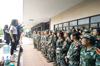 新生们嘹亮的歌声。每天中午12点半,来不及回寝室休息,新生们便穿着绿色的军训服匆匆忙忙赶到一起,开始了紧张的排练。