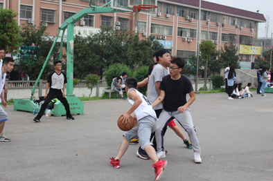 4月12日中午12:30,“文新杯”男子篮球赛小组赛在东门进行,12中文与14广电实力不相上下,最后在两个精彩的加时赛后,12中文以44:43一分的优势胜14广电。