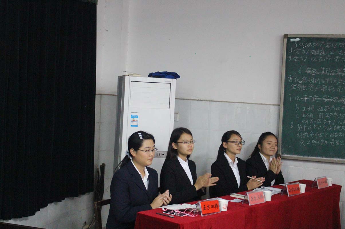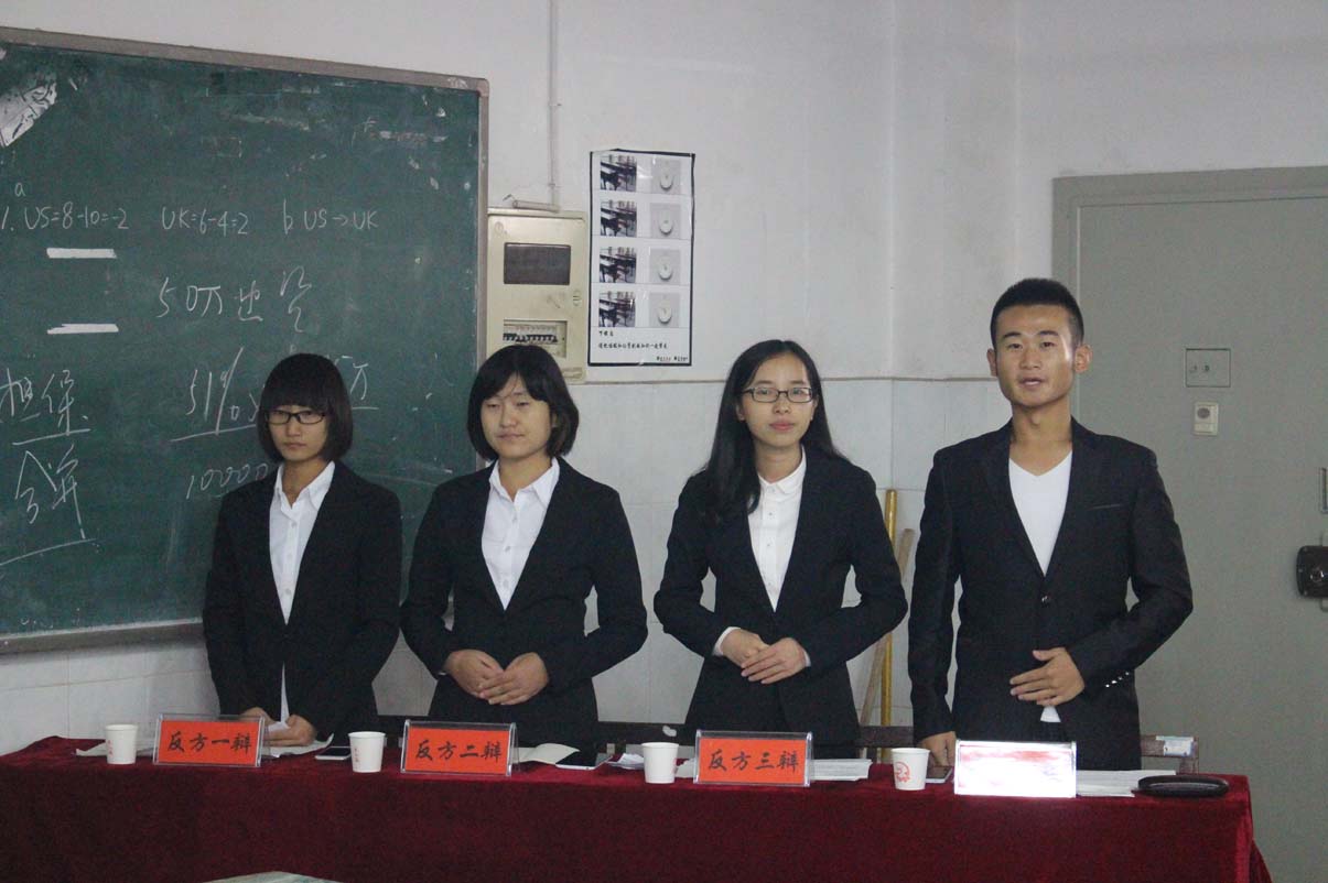 13级的薛珊,吴栋鹏和肖歌担任,钱庆担任主席。最终15新闻一班胜出,本班周晓雪同学获得了“优秀辩手”的称号。