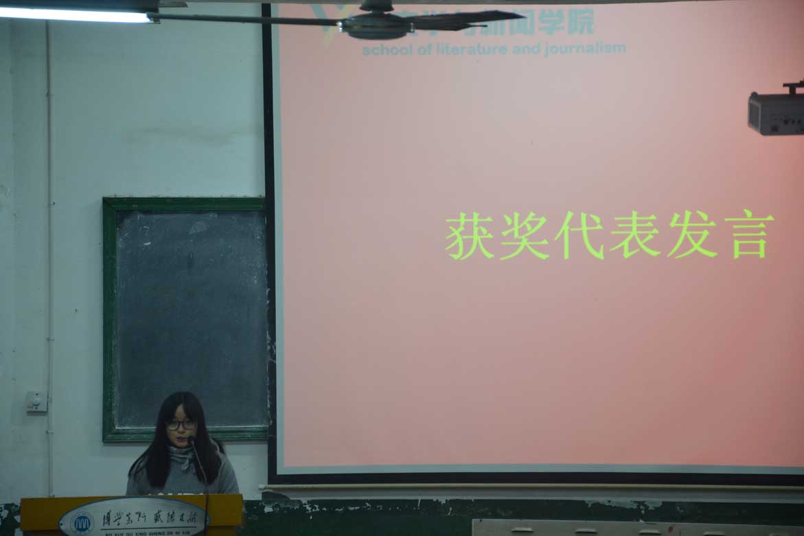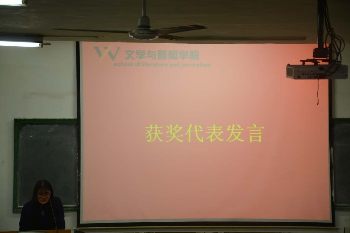 生活部部长李倩作为优秀部门代表发言,她表达了对学生会生活的感谢和对干事们的希冀;宣传部副部长陈鑫作为优秀部长代表发言,他这样说道:“既然选择了远方,便只顾风雨兼程”,做自己喜欢的事,再累也值得我们去坚持;优秀干事代表文娱部罗旅悦,在发言中表达了加入学生会大家庭的喜悦,“与大家共同奋斗的经历还记忆犹新,我希望大家能一起走向优秀。”罗旅悦如是说。