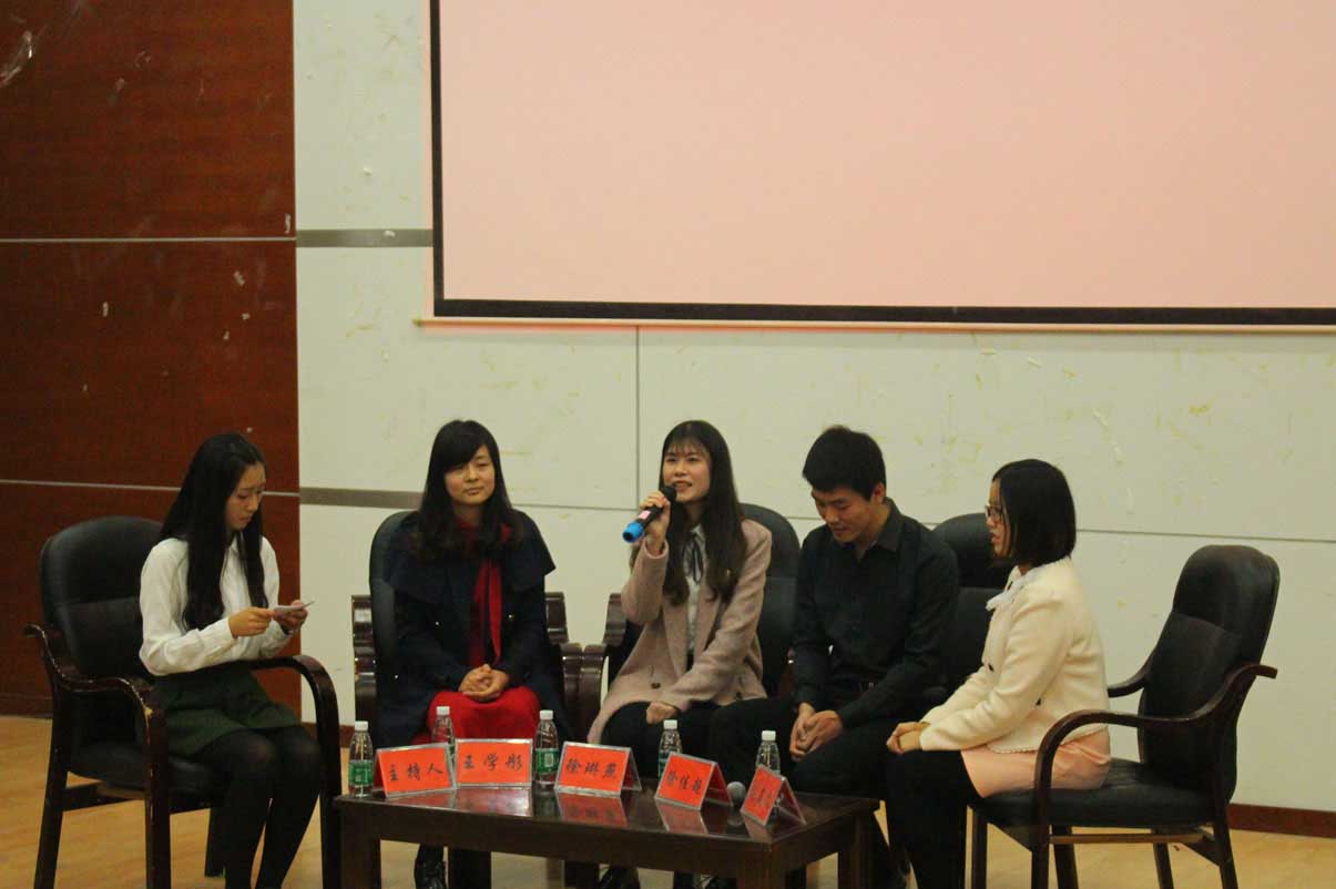 四位学长学姐又就学习方法,实习经历与同学们进行了分享。王学彤和张美文与同学们分享了英语学习经验和学习方法,同学们受益匪浅。徐佳超和徐琳燕更是讲述了自己的实习经历与经验所得。他们告诉同学们,要放低自己的姿态,积极主动地寻找机会。