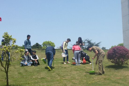 而在第一田径场开展实践活动的学员,动手拾捡第一田径场草坪的塑料瓶、塑料袋等垃圾,并将它们收集到自己准备的编织袋里,然后一齐放入垃圾箱。在此期间,学员们干劲十足,争取做到不遗漏不残留。处处体现着共青团员积极向上,吃苦耐劳的精神。