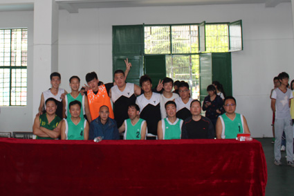 中场上演师生表演赛,老师队由王洁群,雷磊,刘中望,周建军,符继成,周亚霆以及郭凤安等老师组成,与学生代表队对战。19号郭凤安老师表现突出,喜欢快攻,几次进球。老师队配合默契,可惜运球不佳,几次被学生截走得手。双方左右轮换,轻松交手,最终比分30:14,老师队更胜一筹。