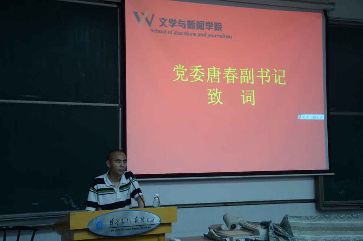 大会开始,党委唐春副书记致辞。他首先感叹时光飞快,文新院团委学生会迎来了新一届成员。接着他表达了对第14届团委学生会同学的感谢。感谢这一年大家将院里规定的活动完成得很好,达到了“精简活动”的目标,但是仍有一定改进空间。最后,唐书记表达了他对同学们的美好祝愿,希望14届主席团的同学找到好的实习单位,希望14届学生会所有同学通过学生会的经历能有丰富的收获。