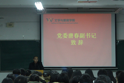 党委唐春副书记和团委书记管胜昔老师。大会主持人为主席助理储文丽。