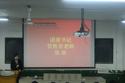 团委书记管胜昔老师致开场词。管老师对于学生会上学期工作的顺利运转向学生会全体成员表示了感谢。同时,针对上学期工作中的一些不足之处她也提出了自己的建议,并鼓励同学们努力把自己的想法付诸实践,充分表现青年人的活力。谈完工作的事情,管老师还叮嘱同学们勤于锻炼,保重身体。