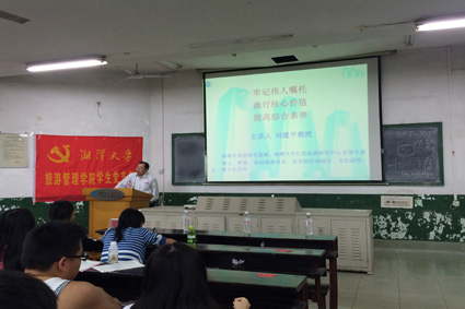 典型共产党员的先进事迹来告诉同学们该如何形成正确的价值观。他还说,作为新一代,我们要改变当今中国人在外国人心中的形象,外出旅游要摒弃乱丢垃圾的恶习,做文明的中国人。讲到提高综合素质时,刘建平教授幽默风趣地为同学们讲述伟人们的小故事,当中的人生道理也深入浅出地被道出。他还鞭策同学们要博览群书,把学习看成一件快乐的事情。最后,刘建平教授祝愿同学们身体健康,学业进步,全面发展,立志成才。