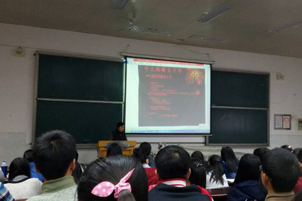 “爱国知识讲座”在经管楼第四阶梯教室开展。曾强教授为主讲人。曾教授是化学院的退休教师,虽然是75岁的高龄,但仍然精神抖擞的完成了此次讲课。14级新生参加了讲座。