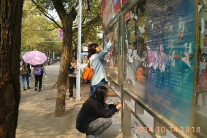 首先,白露同学将同学们按专业分成四队,每队由一个干事带领,并对每个队伍进行任务分配。本次活动是撕掉墙壁上的小广告和打扫卫生。清理范围为北苑铁门口到北青公寓门口之间。