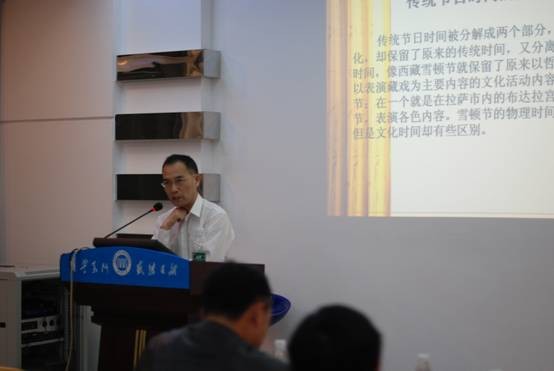而林继富教授则从今年春晚上温暖人心的歌曲“时间都去哪儿了”,引出中 国传统节日——春晚,接着向同学们介绍了日常作息、清明扫墓、端午吃粽子等民俗学知识。讲座中,林教授首先分析了传统节日具有神圣性和实用性两种时间特点。他认为,具有神圣性的中国传统节日时间,自身粘附着诸多的民众历史生活事件和现代生活行为,因此,节日时间可以穿越历史,将过去与将来融合在现在之中,凝聚民族和地区民众共同体的价值判断和道德情感。接着他提出当代中国传统节日三种时间叙事类型:一是传统节日时间被悬置,在现代生活中,人们逐渐忽视传统的节日时间,被悬置的传统节日时间中的节日里人越来越少,人们建构了新的节日时间,因而原本的传统节日时间逐渐被遗忘,但节日内容及其核心文化还在;二是传统节日时间“空心化”,作为一个现代生活的节日,需要打着传统的名号,才能得以生存,因此传统节日的时间和名称成为连接传统与现代的唯一的纽带,而其活动内容及其传达的文化含义则随之消失;三是传统节日时间多元化,现代的节日时间保留了原来的传统时间,但又分离出现代文化时间,因而导致传统节日时间的多元化局面。
