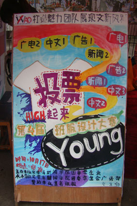 第四届班服设计大赛在北苑主干道摆点,评选班服最佳人气奖。竞选票数总共有1000票,经过一个中午的激烈竞争,最后13中文1班获得最佳人气奖。