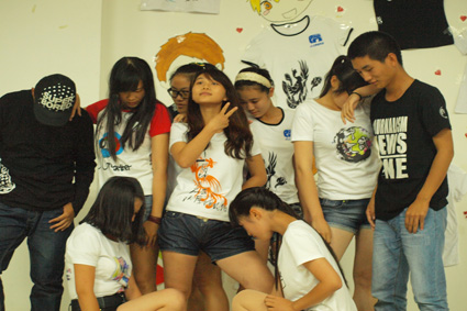 进入班服展示环节,现场的气氛瞬间点燃。各个班级的个性展示,凸显出13届新生的积极向上,青春朝气的精神面貌。新闻一班的闪电、二维码设计尽显新闻一班的开拓创新精神。广告一班六个阳光男孩用可爱多变的舞蹈和幽默逗趣的歌曲赢得全场掌声。广告二班的“不二青春”个性涂鸦又向大家展示出广告人的特立独行。广电一班以一幕幕短小微妙的舞台剧逗得在场观众捧腹大笑。中文一班的“中流砥柱,文以载道”的独特展示与文娱部小干事的暖场舞将观众们的热情点燃。最后出场的中文二班的甩葱舞将整场展示推向最高潮,赢得观众们的欢呼和掌声。