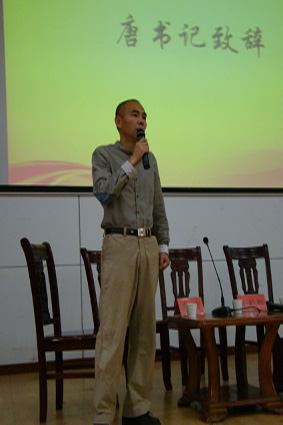 首先,由唐书记致开场辞。唐书记向大家明确分析了当前的考研形势,从院校选择与调剂、专业选择与调配、读研经费等三个方面讲明了国家当前的考研政策,并鼓励有意向考研的同学要坚定信心,一定会收获理想的结果。