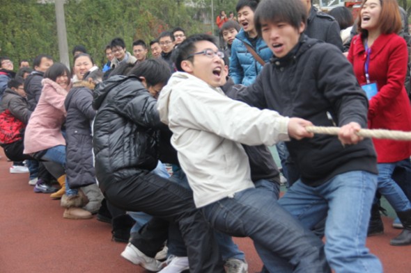 12月16日上午, 2012年 “潇湘杯”研究生拔河比赛在南苑球场激烈展开。