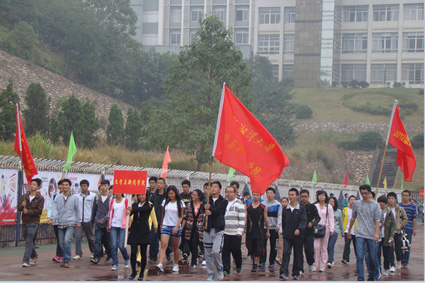 新生定向越野大赛的历史并介绍了本次大赛情况。本届新生定向越野大赛共有十八个院组成的三百五十支队伍参赛,有2100人参加角逐,竞争异常激烈。随后体育教学部钱江老师作为裁判员代表宣誓,校体育教学部部长熊茂湘宣布比赛正式开始,激烈的角逐也随之拉开序幕。