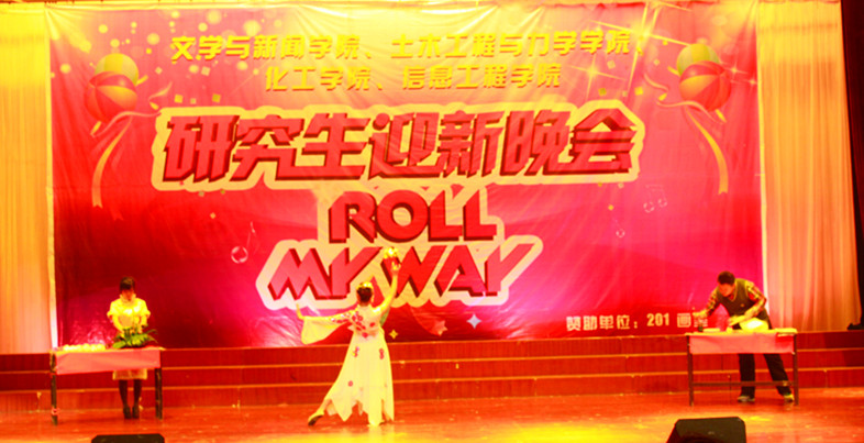动感的乐曲《第一天》、《坏坏惹人爱》在著名校园乐队——六零乐队演唱的精彩演绎下拉开了晚会序幕,其激情旋律,火动全场,赢得阵阵喝彩和掌声;优美的歌曲、动感的舞蹈、幽默的话剧、感人的小品……节目错落交织,精彩纷呈,高潮迭起。爵士舞《MY LOVE》、《YOU ARE MAN》动感炫目,小提琴、钢琴合奏《沉思》典雅悠扬,混搭舞《最炫青花瓷》自由奔放,小品《访谈》、《老同学》幽默诙谐,传统文艺《茉莉花》、《国粹艺术》内敛高雅,流行舞曲《荧光舞》的精彩诡异,神秘多变……晚会中让大家难忘的莫过于由四院一起组织的节目《歌曲串烧》,一曲曲悠扬委婉的旋律,赢得了所有在场观众的阵阵掌声。欢歌劲舞见证了研究们的多才多艺,彰显了激昂的青春活力。