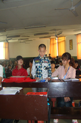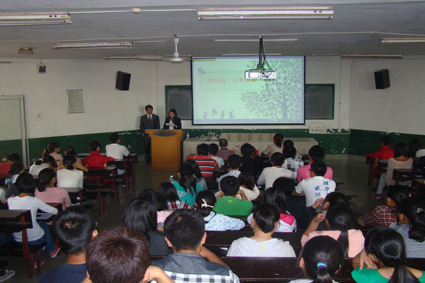 团委学生会青志部部长胡琰文介绍了四项青年志愿者常规活动——“爱心护书”、“爱心血库”、“寝室绿色行动”和“朝阳红”义务支教活动,并呼吁大家积极参与到活动中来。接着,来自青亭小学的小朋友进行了发言,其真挚的感情打动了现场每一位参会者的心,同时也坚定了各位青年志愿者为社会服务的决心。