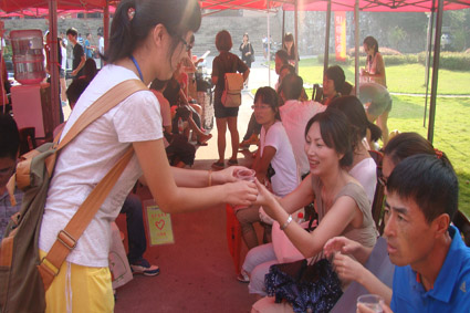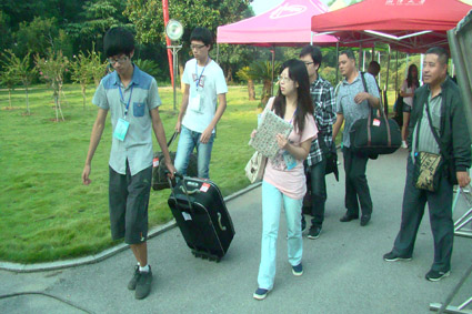 各班级的辅导员耐心解答新生以及家长们的各种问题,以引导新生尽快融入大学生活;接待家长的后勤组人员,及时地为家长们递水解疑;更为辛苦的是行李组的男生们,他们往来于新生寝室和迎新点之间,一次次地帮新生们搬运行李,当被问到累不累时,他们总是说不累,因为去年的这个时候也有学长帮他们搬运行李,而今年他们也想让新生感受到文新人的温暖与热情;校门口的接待组的女生们,头顶烈日在公交路口前迎接新生,并亲自将哔咔漫画