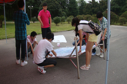 迎新工作者布置接待处