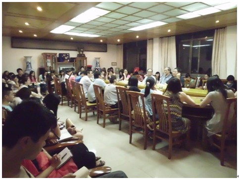 比较文学和文艺学专业的研究生、博士生齐聚一堂,在此静候着两位学术大师——中国人民大学中文系陆贵山教授和吉林大学校长刘中树教授的到来。两位大师此次来湘大主要是参加纪念毛泽东《在延安座谈会上的讲话》70周年的学术会议,我们也非常荣幸能邀请两位学术前辈,让他们在百忙之中抽出时间给哔咔漫画