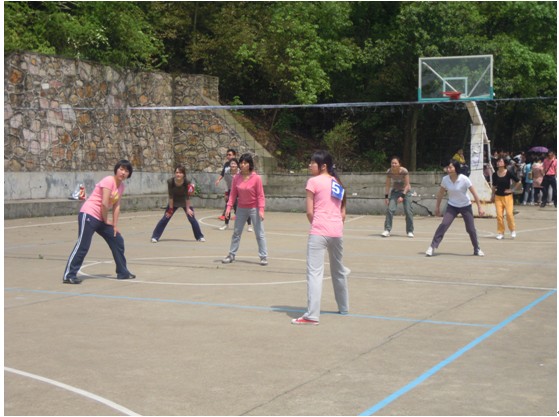 女排队员接着又跟商学院队员展开激烈角逐。