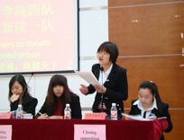一队陈雅、邹雨柔组成的反方围绕辩题“China should allow prisoners to donate their organs in exchange for lessened prison sentences--中国是否应该允许犯罪人员捐献器官以减刑”展开激烈辩论。