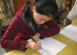 本网12月1日讯(唐湘成 杨璐菁)如果让你选择一种方式来描绘这个冬天,你会选择什么呢?冬是充满灵性的,更是充满诗情画意的,如同袅袅婷婷的湘大一般,笼罩在墨香氤氲之中。11月30日下午2点,文新书法比赛在文科楼504文新院画室举行,选手们用手中的笔,在一片墨香之中,来描绘这份浓浓的诗意。