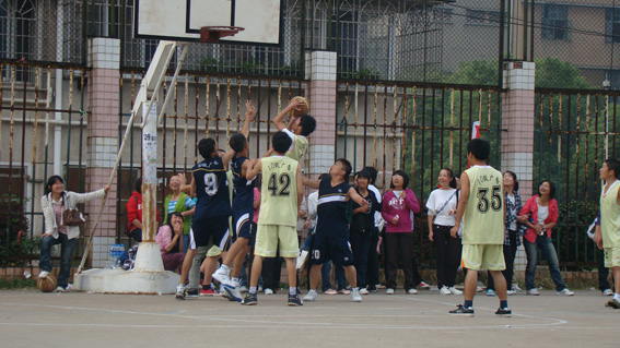 早上7:00,北青球场上挤满了为球赛加油呐喊的观众。7:05,比赛正式开始,双方队员都不甘示弱,拼抢十分猛烈,7:17,第一节比赛结束,比分为0:9,广电班由于发挥一般,以9分的差距暂时落后广告班。