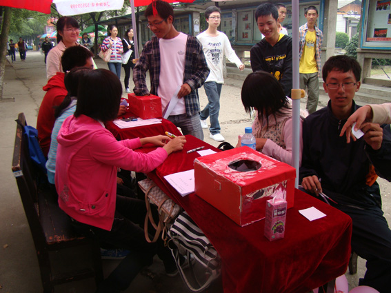 本次活动以“love be with you”为主题,即“爱与你同在”来开展。活动内容主要为心理健康普查、心理委员例会、新生素质拓展三方面。目的是普及心理健康知识,倡导积极健康生活,防止心理问题。通过让过往同学写下自己的烦恼,丢进“烦恼垃圾箱”里的方式,一方面可以宣泄他们内心的不快,同时也实现心理健康的普查,以便更好的了解同学们的心理健康状况。值得指出的是本次活动形式新颖,以抽奖的形式吸引过往的同学参加。相比以前的形式,此种方式有利于扩大普查范围,也有利于反馈丰富、准确的信息。