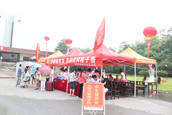迎新接待处正式撤点,历时三天的迎新活动圆满结束。虽然天公不作美,从早上就不停下雨,但暴雨未能浇灭文新人的热情。文新志愿者仍然认真地工作,热情接待家长,冒雨搬运行李,很多人都是穿着湿漉漉的衣服在工作的。有位志愿者是这样说的“即使冒着雨工作我们仍然觉得很快乐,因为可以为新同学出一份力是我们内心最大的快乐。”